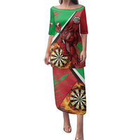 Personalised Wales Darts Family Matching Puletasi and Hawaiian Shirt Welsh Dragon - Grunge Style LT14