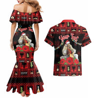 Personalized Albania Christmas Couples Matching Mermaid Dress and Hawaiian Shirt Albanian Man Playing Lahuta With Red Poppy