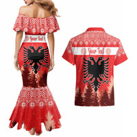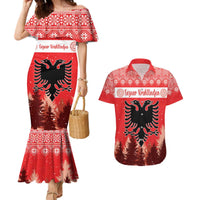 Personalized Albania Christmas Couples Matching Mermaid Dress and Hawaiian Shirt The Double-headed Eagle Christmas Pattern