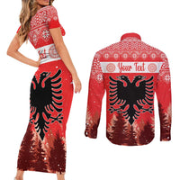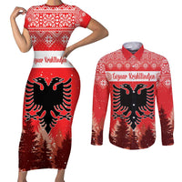 Personalized Albania Christmas Couples Matching Short Sleeve Bodycon Dress and Long Sleeve Button Shirt The Double-headed Eagle Christmas Pattern