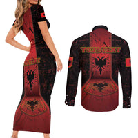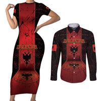 Personalized Albania Couples Matching Short Sleeve Bodycon Dress and Long Sleeve Button Shirt Black Double Headed Eagle DT05