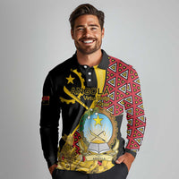 Personalized Angola Long Sleeve Polo Shirt Coat Of Arms Welwitschia Mirabilis