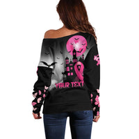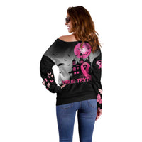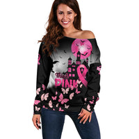 Personalized At Halloween We Think Pink Off Shoulder Sweater Pink Ribbon Butterflies LT01
