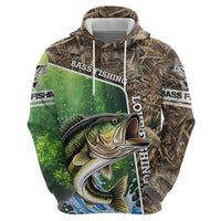 Personalized Bass Fishing Design Hoodie Leaping Fish Graphic and Camouflage Green Water Splash Print TS04