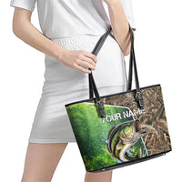 Personalized Bass Fishing Design Leather Tote Bag Leaping Fish Graphic and Camouflage Green Water Splash Print TS04