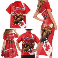 Personalized Beaver and Moose Happy Canada Day Family Matching Short Sleeve Bodycon Dress and Hawaiian Shirt Est 1867 A Mari Usque Ad Mare