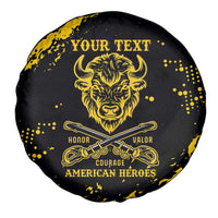 Personalized Bison Buffalo Soldiers Spare Tire Cover American Heroes - Black Grunge Style