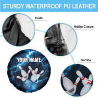 Personalized Bowling Ball Strike Graphic Spare Tire Cover Blue Lightning Storm and Electric Energy