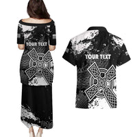 Personalized Brittany Celtic Cross Couples Matching Puletasi and Hawaiian Shirt With Celtic Knotwork