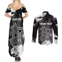 Personalized Brittany Celtic Cross Couples Matching Summer Maxi Dress and Long Sleeve Button Shirt With Celtic Knotwork