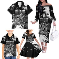 Personalized Brittany Celtic Cross Family Matching Off The Shoulder Long Sleeve Dress and Hawaiian Shirt With Celtic Knotwork