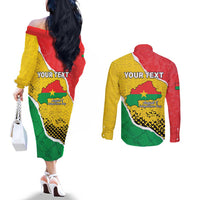Personalized Burkina Faso Independence Day Couples Matching Off The Shoulder Long Sleeve Dress and Long Sleeve Button Shirt Coat Of Arms - Grunge Style