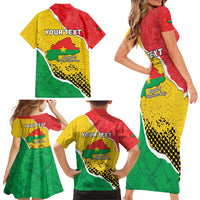 Personalized Burkina Faso Independence Day Family Matching Short Sleeve Bodycon Dress and Hawaiian Shirt Coat Of Arms - Grunge Style