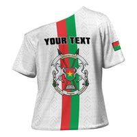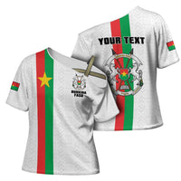 Turn heads and express your unique style with the Personalized Burkina Faso Striped Cross Shoulder Shirt African Mud Cloth Pattern - White from Wonder Print Shop. Perfect for casual outings, festivals, or making a fashion statement, this custom-made cross shoulder shirt combines high-end craftsmanship with eye-catching design.