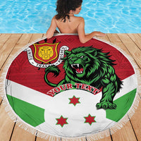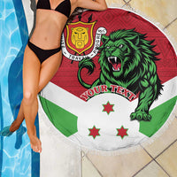 Personalized Burundi Beach Blanket Lion and Coat Of Arms - Flag Style