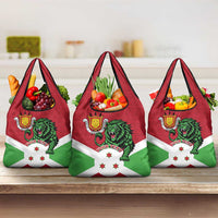 Personalized Burundi Grocery Bag Lion and Coat Of Arms - Flag Style