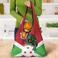 Personalized Burundi Grocery Bag Lion and Coat Of Arms - Flag Style LT15
