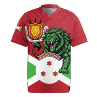 Personalized Burundi Rugby Jersey Lion and Coat Of Arms - Flag Style