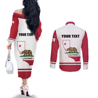 Personalized California Republic Couples Matching Off The Shoulder Long Sleeve Dress and Long Sleeve Button Shirt Red Star The Bear Flag LT01