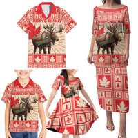 Personalized Canada Moose Family Matching Puletasi and Hawaiian Shirt Maple Leaf Christmas Lightning Art