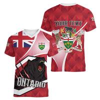 Personalized Canada Ontario Province Women V-Neck T-Shirt Black Bear Flag Stylized LT01