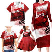 Personalized Canadian Horse Family Matching Long Sleeve Bodycon Dress and Hawaiian Shirt Canada Maple Leaf