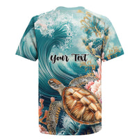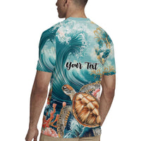 Personalized Caribbean Sea Turtle Rugby Jersey Fantastic Ocean Waves