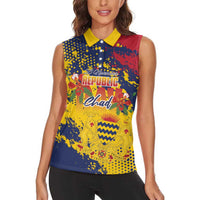 Personalized Chad Republic Day Women Sleeveless Polo Shirt Coat Of Arms - Grunge Style