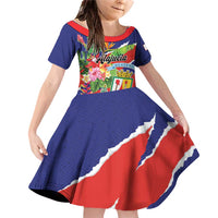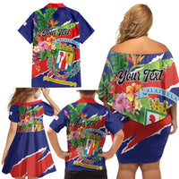 Personalized Costa Rica Alajuela Province Family Matching Off Shoulder Short Dress and Hawaiian Shirt