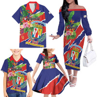 Personalized Costa Rica Alajuela Province Family Matching Off The Shoulder Long Sleeve Dress and Hawaiian Shirt