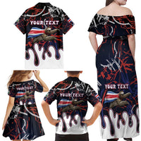 Personalized Costa Rica Family Matching Off Shoulder Maxi Dress and Hawaiian Shirt Flying Sloth DT05
