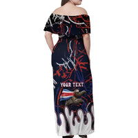 Personalized Costa Rica Family Matching Off Shoulder Maxi Dress and Hawaiian Shirt Flying Sloth