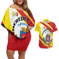 Personalized Costa Rica Heredia Province Couples Matching Off Shoulder Short Dress and Hawaiian Shirt