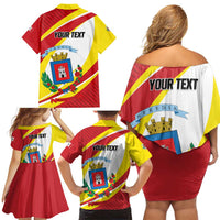 Personalized Costa Rica Heredia Province Family Matching Off Shoulder Short Dress and Hawaiian Shirt