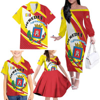 Personalized Costa Rica Heredia Province Family Matching Off The Shoulder Long Sleeve Dress and Hawaiian Shirt