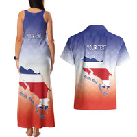 Personalized Costa Rica Independence Day Couples Matching Tank Maxi Dress and Hawaiian Shirt Coat Of Arms With Purple Guaria Morada Orchid