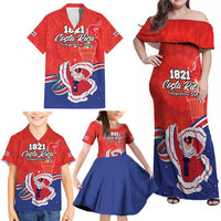 Personalized Costa Rica Independence Day Since 1821 Family Matching Off Shoulder Maxi Dress and Hawaiian Shirt Folk Dancer with Folk Art Pattern