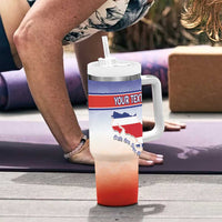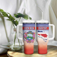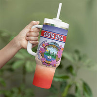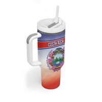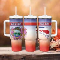 Personalized Costa Rica Independence Day Tumbler With Handle Coat Of Arms With Purple Guaria Morada Orchid