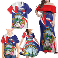 Personalized Costa Rica Pura Vida Tropical Family Matching Off Shoulder Maxi Dress and Hawaiian Shirt