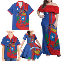 Personalized Costa Rica San José Family Matching Off Shoulder Maxi Dress and Hawaiian Shirt Ad Meliora