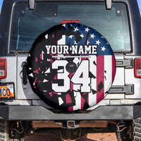 Personalized Dirt Bike Racing Spare Tire Cover Shattered American Flag and Race Checkered Patch Graphic in Red White and Blue TS04