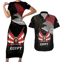 Personalized Egypt Revolution Day Couples Matching Short Sleeve Bodycon Dress and Hawaiian Shirt Steppe Eagle Lotus Flower LT01