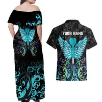 Personalized Elegant Wings and Dartboard Design Couples Matching Off Shoulder Maxi Dress and Hawaiian Shirt with Swirling Floral Patterns TS04