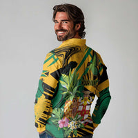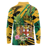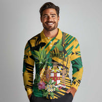 Personalized Jamaica Red-billed Streamertail Long Sleeve Polo Shirt Pineapple Tropical Style