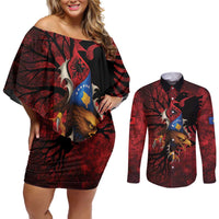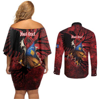 Personalized Kosova Albanian Roots Couples Matching Off Shoulder Short Dress and Long Sleeve Button Shirt Kosova Albanian Eagle Flag