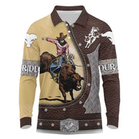 Bull Riding Long Sleeve Polo Shirt Cowboy Courage Rodeo