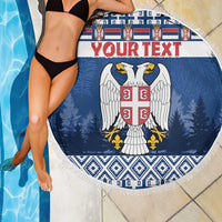 Personalized Serbia Christmas Beach Blanket Coat Of Arms - Blue Version
