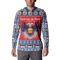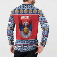 Personalized Serbia Christmas Button Sweatshirt Eagle with Cesnica Christmas Bread