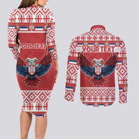 Personalized Serbia Christmas Couples Matching Long Sleeve Bodycon Dress and Long Sleeve Button Shirt Double-Headed Eagle - Red Version