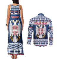 Personalized Serbia Christmas Couples Matching Tank Maxi Dress and Long Sleeve Button Shirt Coat Of Arms - Blue Version